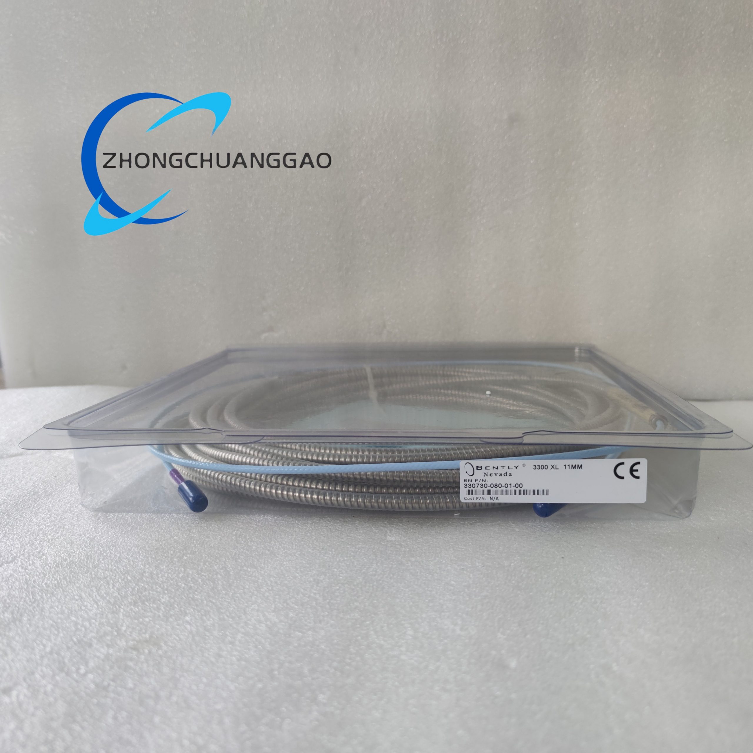 A precision-engineered 75 Ω triaxial extension cable that electrically connects the 11 mm eddy-current probe to the 3300 XL Proximitor driver. It maintains full-scale linearity and signal fidelity over 8 m while providing IP68 sealing and wide temperature capability for harsh industrial environments.